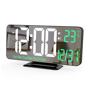 【送料無料】デジタル時計 目覚まし時計 置き時計 時計 6.7インチミラー時計 掛け時計 明るさ調整可能なLED 時計 寝室、リビングルーム用デュアル目覚まし時計 12/24時間/曜日/日付/温度表示...