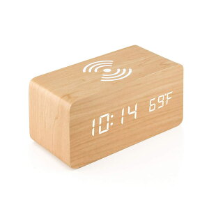 温かみのある木目調が、どんなお部屋にもピッタリなLEDデジタルクロックです。 置くだけで簡単に充電ができる、ワイヤレス充電対応のデジタルクロック。 気温、湿度表示、LED表示の輝度調整機能など便利な多機能付きクロックです。 温か