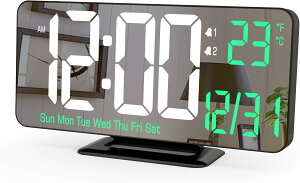 【6.7インチLED目覚まし時計】この時計は、洗練されたミラー時計スタイルの 6.7 インチの大型 LED ディスプレイを備えています。 デュアルアラーム、12/24 時間形式、日付と曜日、温度(F/C)、自動/手動調光。スタイリッシ...