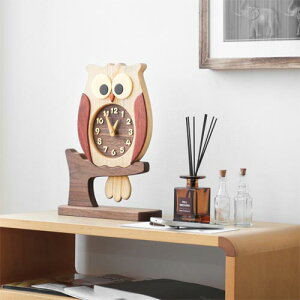 置き時計で珍しく振り子が付いています。尻尾を眺めているとふくろうと同じように一息つけるかもしれません。