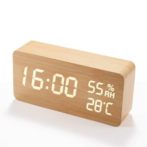 商品コード2b93dc130q商品名目覚まし時計 置き時計 おしゃれ 木目 LEDデジタル時計 アラームクロック 温度湿度計 カレンダー 音声感知 USB/乾電池給電 イエローブランドAndchiカラ...