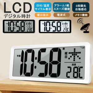【LCD大型ディスプレイデジタル表示電波時計】:時間の誤差を自動で修正する電波時計。正確な時間を受信しているため、どの時計よりも正確さは抜群。9.5インチの高精細超薄型ディスプレイを搭載しており、時間のことを見やすいです...