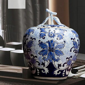 Pot-HEXOMP1BWB1 商品説明 青と白のアンティークなデザインが美しい模様が施された青白蓋付飾り壺・大です。 シノワズ...