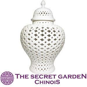 商品名:ホワイトゴールド ジンジャージャー 陶器蓋付壷 陶器製の蓋付きの飾り壷。 シノワ風の陶器壷を艶やかな白色で着色し、蓋と口・底部分にアクセントの金色を付けた、クラシカルながらもモダンな雰囲気を感じさせるデザインで