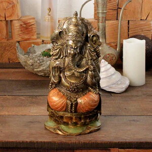 どうして牙が欠けてるの?何を叶えてくれるの? よく知れば、ガネーシャをもっと信じられるはずです。 詳しくは→こちら 商品説明 穏やかな表情で玉座に腰掛けるガネーシャ像。 手には象の調教に使われるアン