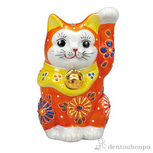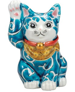 九谷焼で作られた華やかな招き猫です。「千客万来」「商売繁盛」「金運招福」「開運招福」「病を防ぐ魔除け」などの願いを込めて飾られます。右手を挙げているものは金運、左手を挙げているものは人(客)を招くとされており...