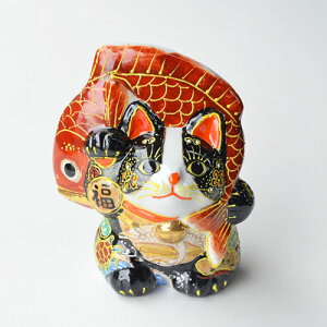 サイズ:幅12cm×奥行13cm×高さ23cm 箱:紙箱 商売繁盛や良縁を招くと言われる左手を挙げた、九谷焼の華やかな招き猫です。愛らしい表情の全身には、日本の縁起物が描かれています。 祝鯛:「めでたい」に通じる縁起物として...