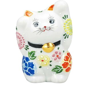 ■ 招き猫 白盛花 3.3号 【 九谷焼 】 <仕様> ・ショップ品番:kti7286 ・商品サイズ:幅:6.5cm × 奥行:5.5cm × 高さ:10.2cm ・箱...