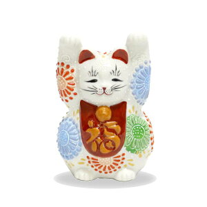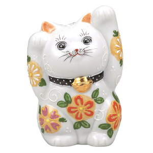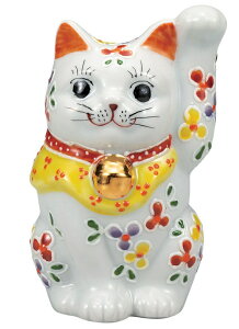 日本の伝統工芸品【九谷焼】 4号招き猫 小花 (K9-1575) 「盛」・・・(Mori-style) 獅子や招き猫等の置物によく見られる上絵付け手法。専用の絵具...