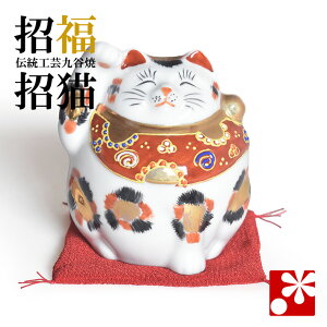 サイズ:幅6.5 奥行5.5 高10.2 (cm) ■素材:磁器 ■生産地:日本(九谷焼) 九谷焼で作られた華やかな招き猫です。「千客万来」「商売繁盛」「金運招福」「開運招福」「病を防ぐ魔除け」などの願いを込めて飾られます...