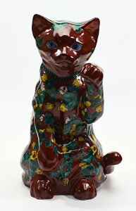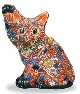 寸法:約W13.5cm×D17cm×H23cm九谷焼の伝統的な技法で絵付けを施した招き猫です。猫が前足を上げ頭を掻く動作が人を招く手振りを連想させることから、商売繁盛のシンボルとして招き猫が縁起置物として作られるようになりました...