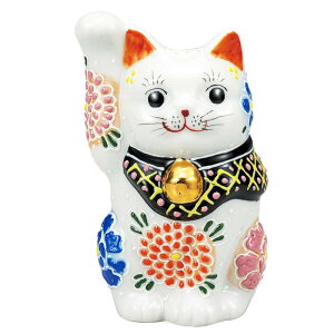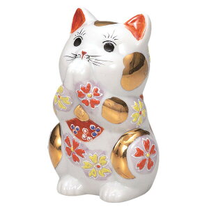 九谷焼招き猫(右手金運招き猫)2号菊 素材:磁器 サイズ:幅4cm×奥行き4cm×高さ7cm 箱:紙箱 一点一点手描きで、表情豊かな九谷焼の招き猫。 ちょこんと手のひらに乗るサイズで...