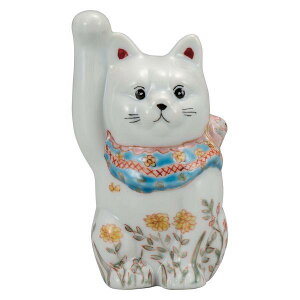 九谷焼金ラベル(素地:石川県産、加飾:九谷焼産地) 素材:磁器 サイズ:幅12cm×奥行13cm×高さ23cm 付属品:布団 箱:紙箱 金運を招くと言われる右手を挙げた、九谷焼の華やかな招き猫です。愛らしい表情の全身には...