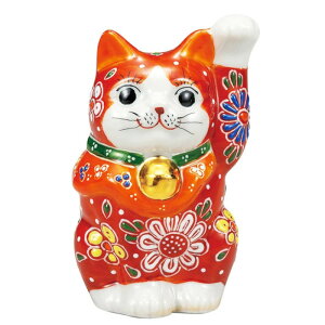 絵具を用いて、「一珍」と呼ばれる独自の道具を使い、立体的に描く高度な技法です。豪華絢爛な九谷焼の置物。贈り物にもおすすめです。 【招猫について】 右手を上げた招猫・・・金運招福 左手を上げた招猫...