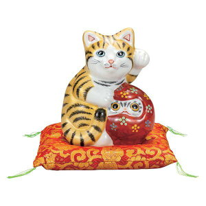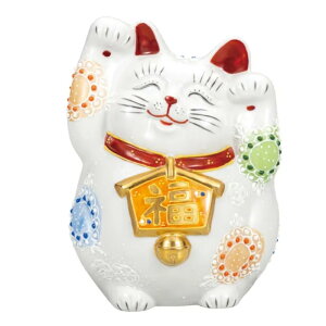 九谷焼金ラベル(素地:石川県産、加飾:九谷焼産地) 素材:磁器 サイズ:幅8cm×奥行8.5cm×高さ11.5cm 箱:紙箱 これぞ、福を招く縁起物。左手に鯛を持った九谷焼の招き猫です。 右手をあげているのはお金...