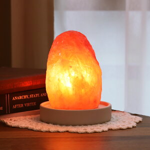 ライト 蓮の花 クリスタル 蓮華灯 ガラス容器 USB アロマ用 照明 ベッドサイド 台座 ロータス 浄化用 置物 (オレンジ岩塩)