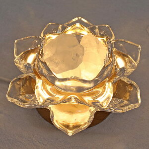 ライト 蓮の花 クリスタル 蓮華灯 ガラス容器 USB アロマ用 照明 ベッドサイド 台座 ロータス 浄化用 置物 (オレンジ岩塩)