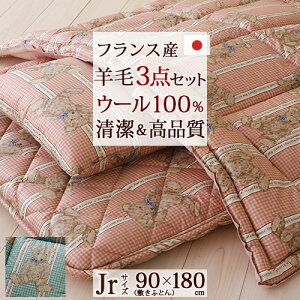 10/1限定★11%OFFクーポン 【ジュニア布団セット・日本製】掛けふとんと枕が洗える布団セット 上質なフランス羊毛使用!お子様に安心・安全の日本製・ 綿 100%!ジュニア組布団セット 3点セット/子供用布団セット...