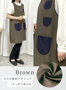 ピンク、ブルーグリーン、ベージュ、キャメル、ブラウン 素材 綿100% セット内容 エプロン 商品特徴 ワンピース風エプロンでいつもよりちょっとおしゃれなおうち時間 バック