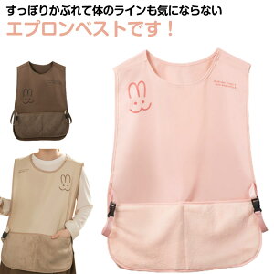 エプロン ベスト かぶるだけ 撥水 ポケット付 ショート丈 ゆった