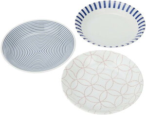 ヤマ吾陶器 皿 お皿 カレー皿 パスタ皿 セット 3枚 美濃焼 和モダンパスタカレー皿(3柄組) 藍、白サイズ:約径21.5×高3.8cm素材:磁器電子レンジOKモダンな和風柄を絵付けした器です。藍色...