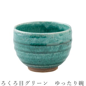 【ろくろ目グリーン ゆったり碗】 ※この商品は、陶器のあたたかみを生かすために手作業、手作りの部分が多く、写真とまったく同一のものになることはありません。 商品ページ内の「陶器に対するご理解とお願い」を必ずお読みくだ