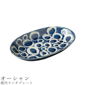 【楕円ランチプレート(オーシャン)】 ※この商品は、陶器のあたたかみを生かすために手作業、手作りの部分が多く、写真とまったく同一のものになることはありません。 商品ページ内の「陶器に対するご理解とお願い」を必ずお読み