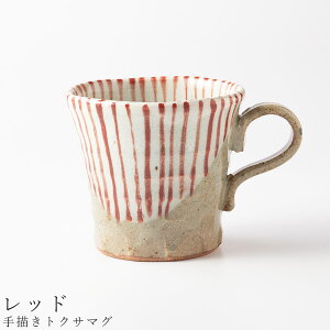 【手描きトクサマグ(レッド)】 ※この商品は、陶器のあたたかみを生かすために手作業、手作りの部分が多く、写真とまったく同一のものになることはありません。 商品ページ内の「陶器に対するご理解とお願い」を必ずお読みくださ