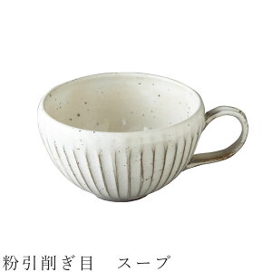 【粉引削ぎ目 スープ】 ほっこりかわいい、あたたみのあるデザイン。 美濃焼の粉引の食器は、いろいろなお料理にあう、落ち着いた白が特徴です。 ※この商品は、陶器のあたたかみを生かすために手作業、手作りの部分が多く...