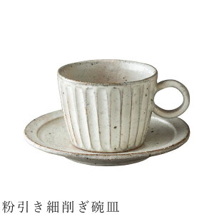 【粉引き細削ぎ碗皿】 ※この商品は、陶器のあたたかみを生かすために手作業、手作りの部分が多く、写真とまったく同一のものになることはありません。 商品ページ内の「陶器に対するご理解とお願い」を必ずお読みください。 ─┘─