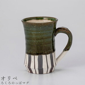 【ろくろのっぽマグ(オリベ)】 ※この商品は、陶器のあたたかみを生かすために手作業、手作りの部分が多く、写真とまったく同一のものになることはありません。 商品ページ内の「陶器に対するご理解とお願い」を必ずお読みくださ