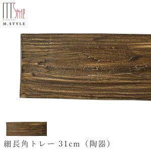 【洞木 細長角トレー 31cm 錆(ブラウン)】 美しい木目調のストーンウェア食器シリーズ。 木製のような見た目の陶器のお皿です。 ※手作りのため、若干色合いやサイズ、容量が異なることがございます。予めご了承ください...