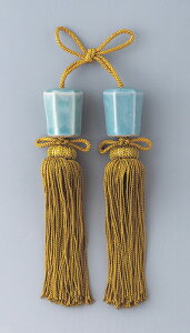 サイズ◆総丈 吊り下げ時 約26cm仕様 ◆玉部分:陶器 青磁(せいじ) 房:人絹 房の色目:金茶・こげ茶・紫・ベージュ 収納形態:桐箱 落款入り特徴 ※ご注意! 玉部分は焼き物の為、同じ柄はありません。 色目等はほぼ同