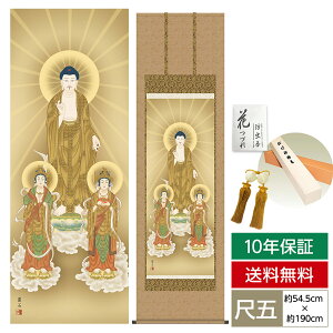 メーカー希望小売価格はメーカーカタログに基づいて掲載しています商品名仏事掛軸 三尊佛 阿弥陀三尊佛商品番号912sn-zk1e1-k138作家名高見 蘭石(三美会)サイズ書画:尺五掛軸:幅:54.5cm×高さ:約190cm仕様洛彩緞子...