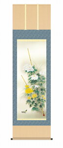 掛け軸 菊花 作者 田村竹世(三美会) 軸寸法 幅54.5×190cm(尺五) 本紙 新絹本 表装 洛彩緞子本表装 軸先 陶器 種類 高精細巧芸画(手彩入り)・・・世界の有名美術館がレプリカを制作するため採用している最先端ジグレ版画技...