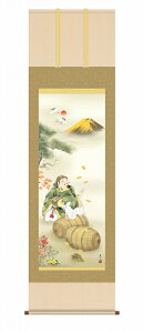 カタログ パンフレット リーフレット サイズ・軸サイズ:幅54.5X高さ約190cm 仕様・本紙:新絹本 軸先:陶器 桐箱畳紙収納 正絹 最高級筋廻仕様 商品説明 ・鮮やかな真紅に染まる霊峰不二を望み、七人の福徳の神様「七福神」が一堂に集