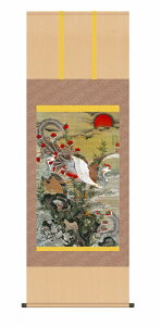 名画複製画の掛け軸 旭日鳳凰図 作者 伊藤若冲(1716-1800) 伊藤若冲 近世日本の画家の一人であり、江戸時代中期の京にて活躍した絵師。没後200年にあたる平成12年の京都国立博物館での「若冲展」で一躍脚光を浴び、人気が高まって...