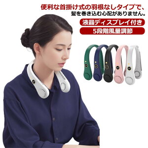 【液晶ディスプレイ付き】【5段階風量調節】重量も200gと軽量なので、仕事や家事など軽い作業中に装着しても肩が疲れにくくおすすめの首掛け扇風機です。吹出口は本