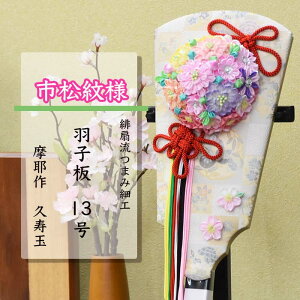 受け台付羽子板飾り 13号(羽根付) 「久寿玉 捻じ花淡彩」 平安豊久。羽子板のサイズ:高さ430mm(受け台込み)。つまみ細工:正絹。羽子板の匠 摩耶の羽子板飾り。赤ちゃんが生まれて初めて迎えるお正月(初正月)に...