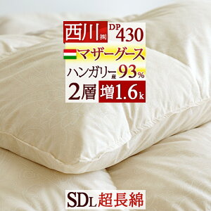 ★[20日16時~8H] マザーグース 羽毛布団 西川 セミダブル 超ロング 長身用 グース 羽毛ふとん セミダブルサイズ 【掛布団カバー等特典付】ハンガリー産マザーグースダウン93% 暖か1.6kg...
