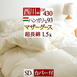 西川 羽毛布団 セミダブル マザーグース ハンガリー産マザーグースダウン93% 【掛布団カバー付】グース 羽毛ふとん DP430 綿100% 超長綿 1.5kg 西川ダウン フレッシュアップ加工 抗菌...