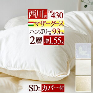★[20日16時~8H] マザーグース 羽毛布団 西川 セミダブル 【西川掛布団カバー付】 グース 増量 セミダブルサイズ 羽毛ふとん 1.55kg ハンガリー産マザーグースダウン93% DP430 2層式...