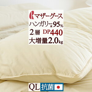 マザーグース 羽毛布団 クィーン 【西川掛布団カバー特典付】グース 大増量2.0kg クイーンサイズ ハンガリー産マザーグースダウン95% DP440 羽毛ふとん 超長綿 綿100% 抗菌 2層式 二層...