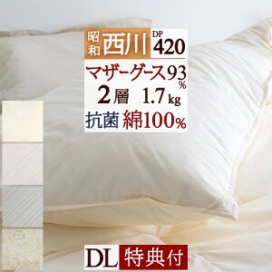 マザーグース 羽毛布団 ダブル 西川 【西川掛布団カバー特典付】 あったか1.7kg ホワイトマザーグースダウン93% 羽毛ふとん DP420 二層式 超長綿 抗菌 花粉ダニ対策 昭和西川 日本製 羽毛掛け布団...