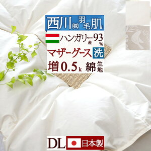 羽毛肌掛け布団 ダブル ダウンケット マザーグース グース 西川 増量0.5kg 羽毛ふとん 洗える 羽毛布団 夏用 ハンガリー産マザーグースダウン93% 綿100% 生地 日本製 ウォッシャブル 夏用...