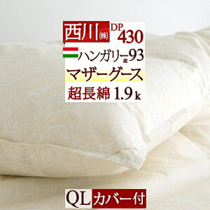 【 10,000 円OFF】 マザーグース 羽毛布団 西川 クイーン クイーンサイズ【西川掛布団カバー付】グース 1.9kg ハンガリー産マザーグースダウン93% DP430 クィーン 羽毛ふとん 衿元フィットキルト...