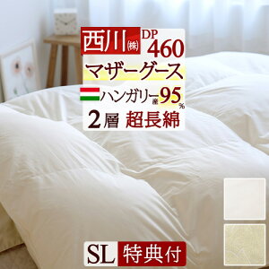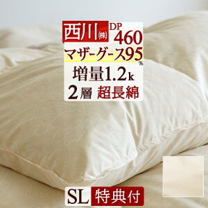 全品P5&最大10%OFFクーポン★[20日16時~8H] 羽毛布団 シングル マザーグース 【西川掛布団カバー等特典付】 西川厳選マザーグース ダウン95% DP460 増量1.2kg 2層 二層式キルト...
