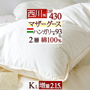 全品P5&最大10%OFFクーポン★[20日16時~8H] 羽毛布団 キングサイズ キング マザーグース 西川 【掛布団カバー等特典付】グース 増量 2.15kg 羽毛ふとん ハンガリー産マザーグースダウン93% DP430 2層式...
