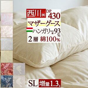 全品P5&最大10%OFFクーポン★[20日16時~8H] 羽毛布団 西川 シングル マザー グース 【西川掛布団カバー等特典付】 DP460 羽毛ふとん 『増量1.3kg』ハンガリー産マザーグース ダウン95% 2層 二層式キルト...