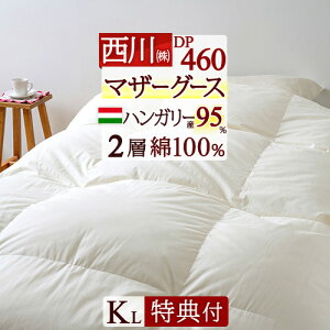 全品P5&最大10%OFFクーポン★[20日16時~8H] 羽毛布団 キングサイズ キング 西川 マザー グース 【西川掛布団カバー等特典付】 羽毛ふとん DP460 ハンガリー産 マザーグース ダウン95% あったか2.1kg...